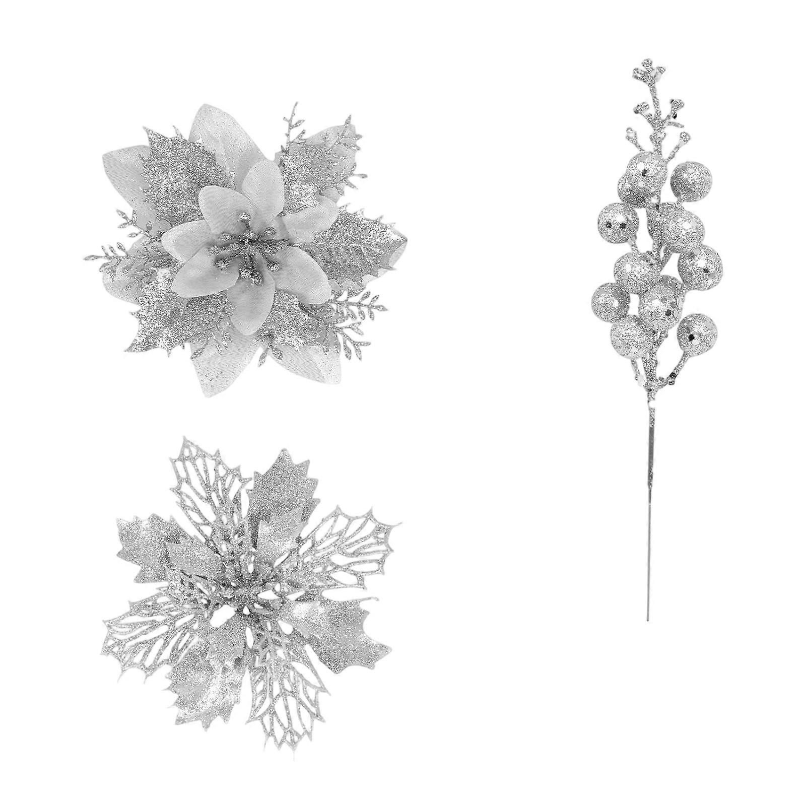 Christmas Simulation Flower Waterproof Faux Plant Decorations Suitable For Mantles Centerpiece Entryway Wall Hanging Silver