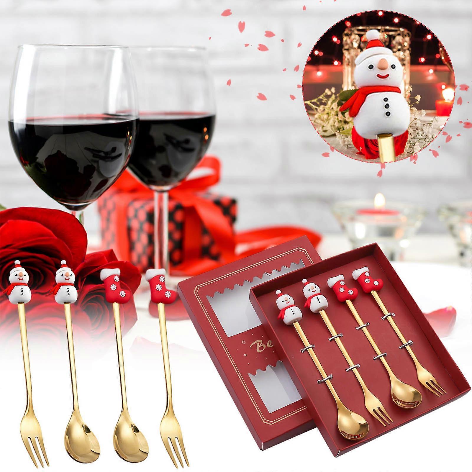 Pop Up Christmas Tree With Lights 4PCS Stainless Steel Christmas Spoon Gift Set Dessert Spoon Fork Coffee Spoon Christmas Pendant Spoon Tableware Set
