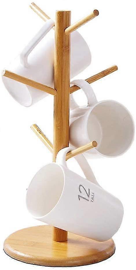 Mug Holder Tree, Coffee Cup Holder, Bamboo Mug Tree Stand, Coffee Cup Rack Dryer With 6 Hooks