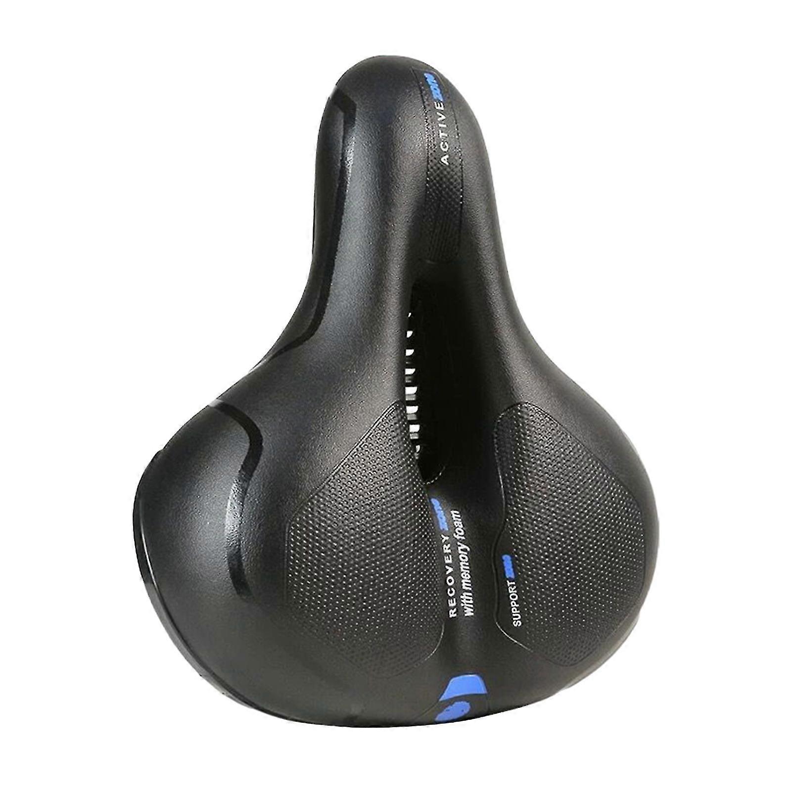 Comfortable Bike Seat With Memory Foam Cushion Shock Absorption Reflective Strip Wide Bicycle Saddle Replacement For Indoor/outdoor Bikes