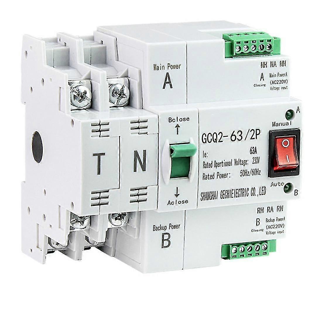 Ats Dual-power Automatic Transfer Switch Uninterrupted Power 2p 63a Ac230v 35mm Rail Installation T