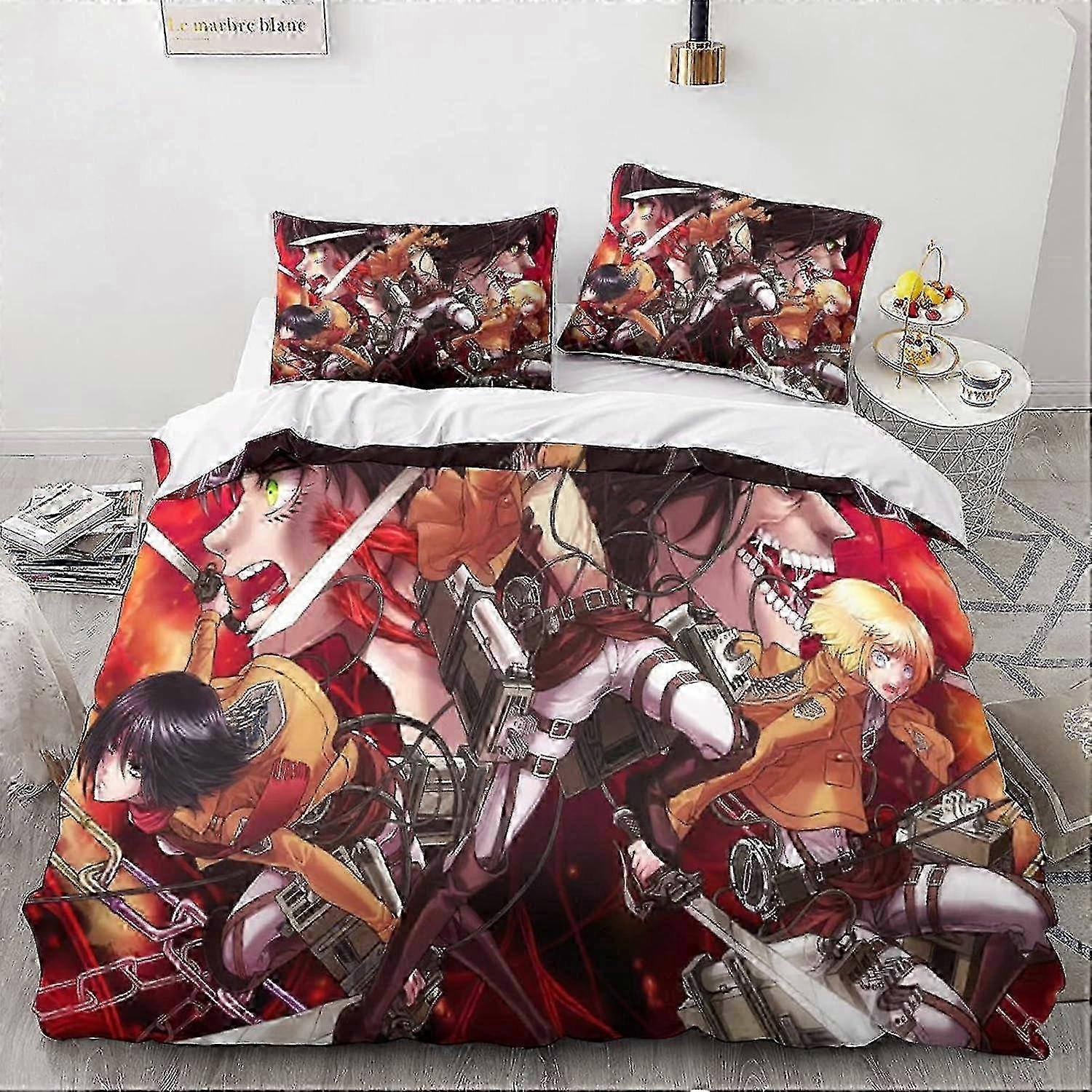 Attack on Titan Bedding Set, Microfiber Duvet Cover and Pillowcases, Anime and Japan Pattern, D with Duvet Cover and Zipper, King 135*200 CM