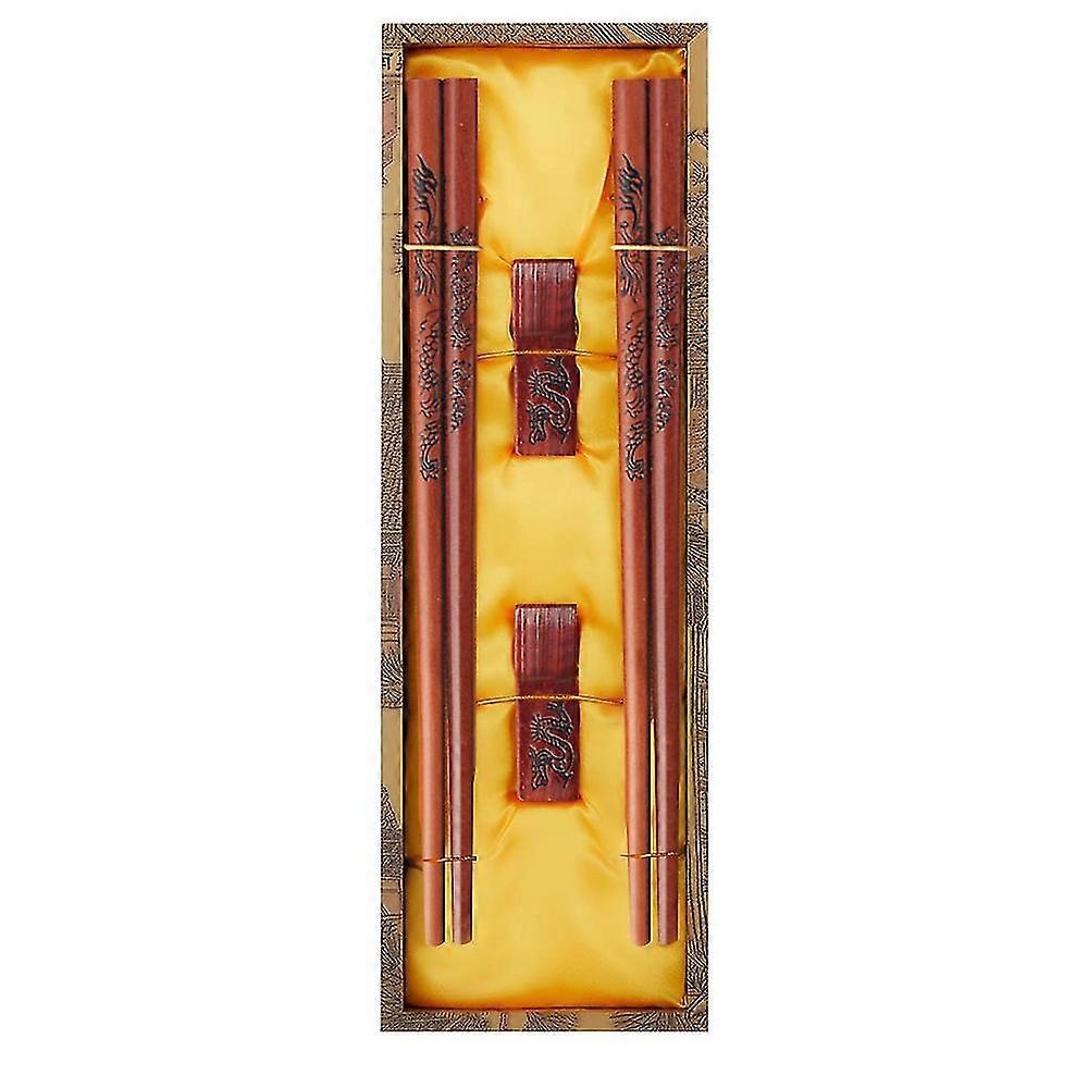 Auperto Chopsticks Reusable, Wooden Chopsticks With Engraved Dragon And Phoenix Chinese Dragon Chopsticks With Case, Holder