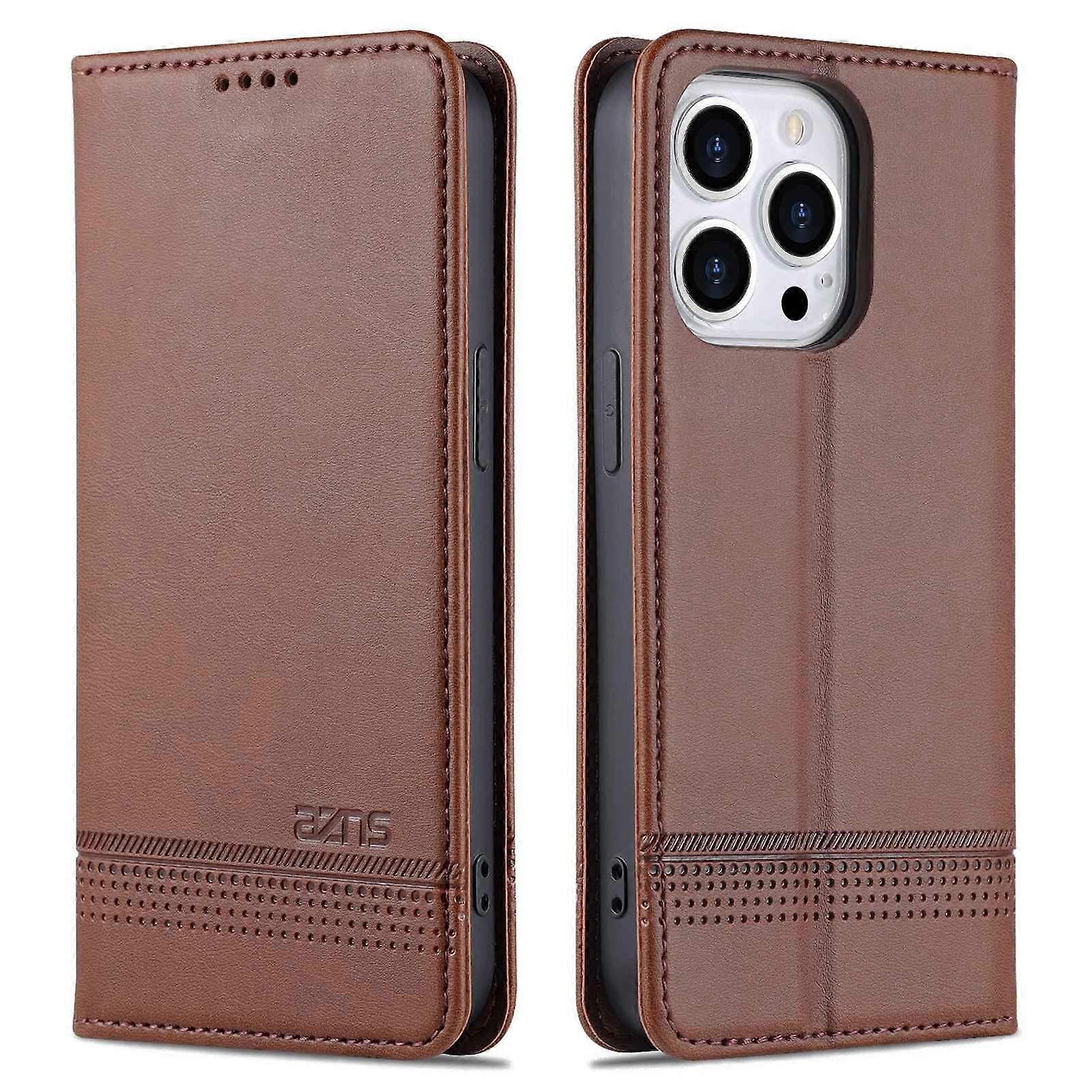AZNS for iPhone 14 Pro 6.1 inch Anti-fall PU Leather Folio Phone Case Wallet Magnetic Absorption Ful