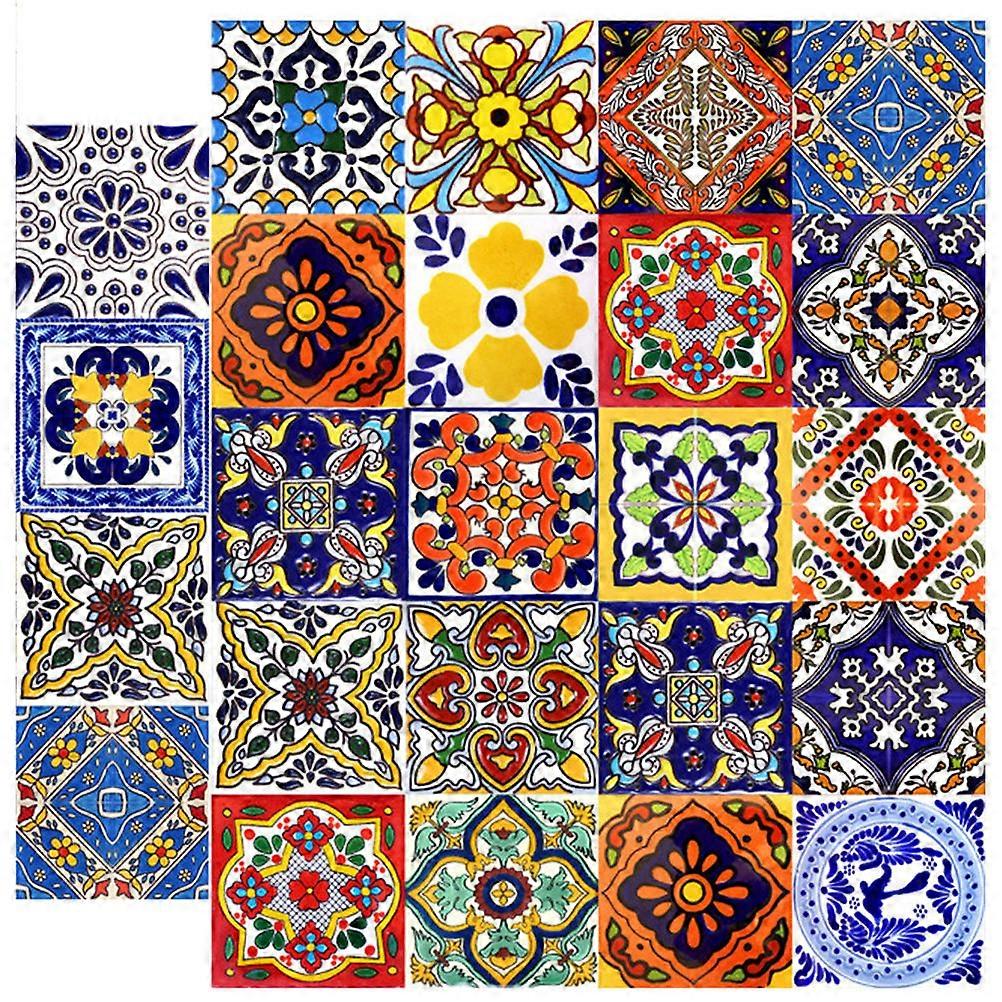 Mexican Tiles 24Pcs Assorted Color PVC Stick and Peel Tile Floor Decoration