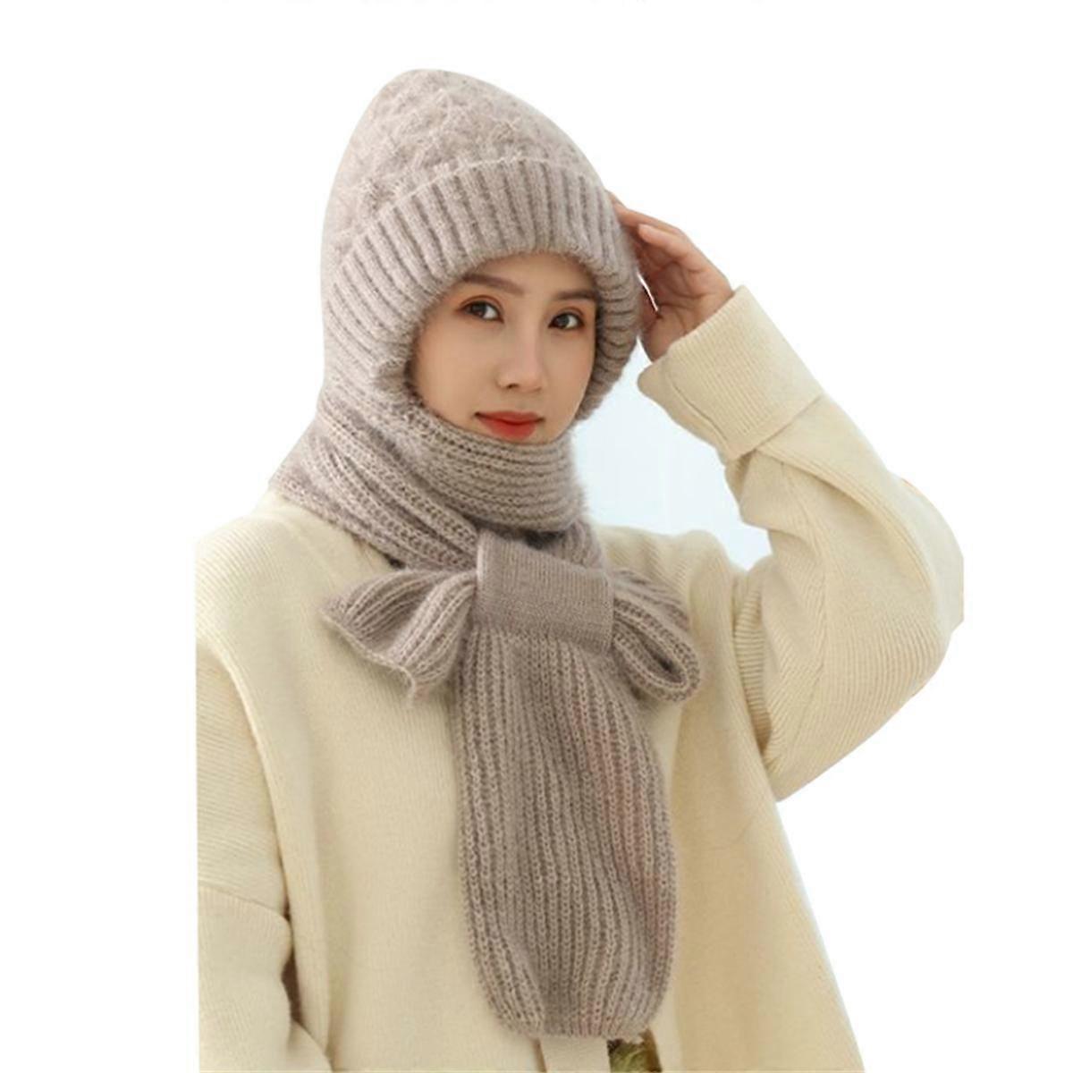 Women'S Plush-Lined Acrylic Balaclavas Hood Scarf Hat Windproof Integrated Ear Protector Fashionable Winter Cap-C