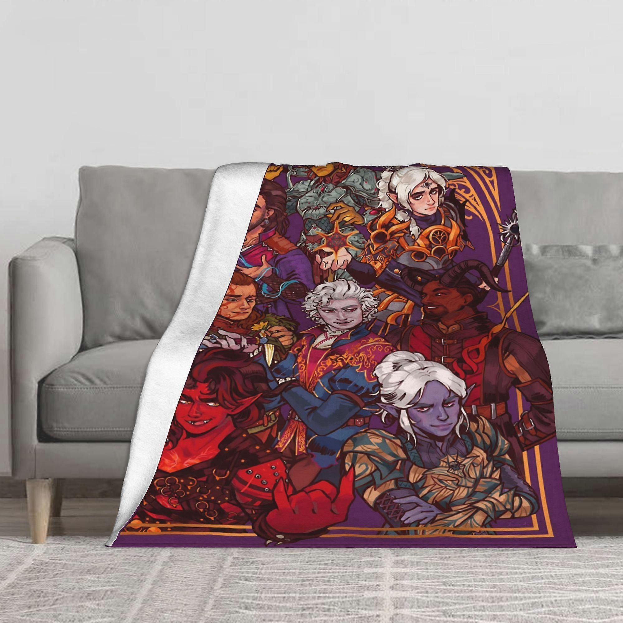 Baldur's Gate RPG Video Game Throw Blanket - Soft Flannel All-Season Bedspread with Baldur's Gate Characters, Deep Purpl-azxcv115