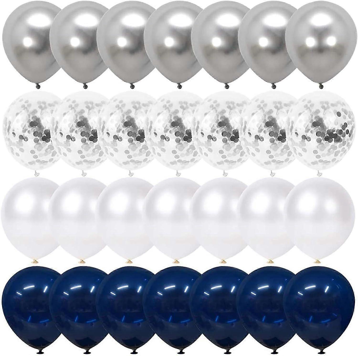 Navy Blue and Silver Confetti Balloons 50 pcs, 12 inch White Pearl and Silver
