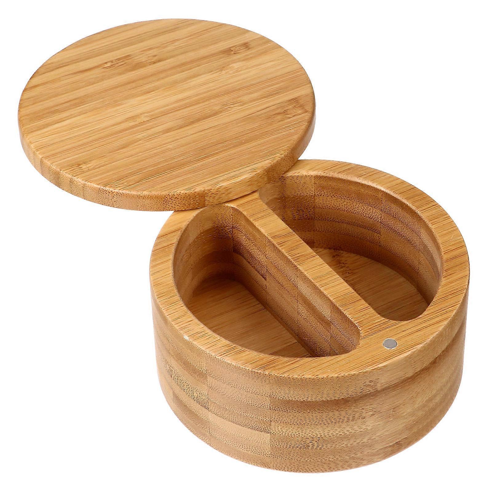 Bamboo Round Spice Jar Double Grids Design Kitchen Use 12X12CM Spice Storage 1Pack