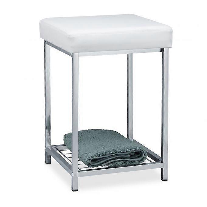 Vår kompakta pall med en mjuk sits erbjuder eleganta och funktionella sittplatser för alla rum. Detta mångsidiga plagg har en elegant design i kromad metall och vitt konstläder, vilket förstärker din heminredning. Förbättra ditt utrymme med en elegant pall med en kromad metallram och vitt konstläder. Använd den inbyggda hyllan för bekväm förvaring av tidningar och småsaker. Njut av mångsidig användning som extra sittplatser, en toalettbordsstol eller en hållare för badrumstillbehör. Skydda dina golv med gummifötter som förhindrar repor och skador. Koppla av med en bekväm sits, perfekt för att vila benen efter en lång dag. Uppgradera ditt hem med denna multifunktionella pall som kombinerar stil och praktisk. Dess kompakta design gör den idealisk för alla utrymmen, från hallen till vardagsrummet. Ta din i dag. Specifikationer Material: Kromad metall, vitt konstläder Funktioner: Inbyggd förvaringshylla, skydd av gummifötter