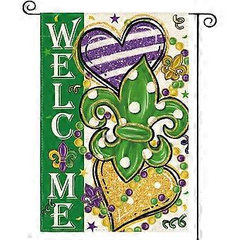 Bandeira de Jardim Mardi Gras Fleur de Lis 12x18 Polegadas Dupla Face, Bem-vindo Carnaval GE