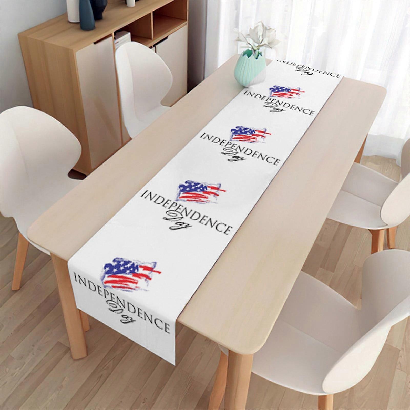 YiFudd Independence Day Table Flag With Non-Slip Heat Resistance Linen Tablecloth Decorative Table Runner Mat For Dining Table
