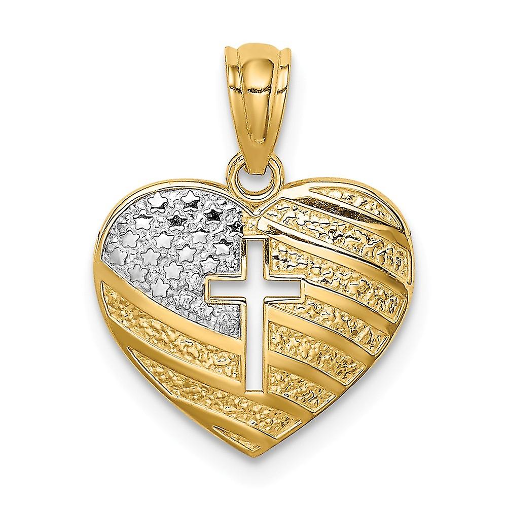 14k White Rhodium Usa Flag With Religious Faith Cross Love Heart Pendant Necklace 17x13mm Wide-Pendant for Women
