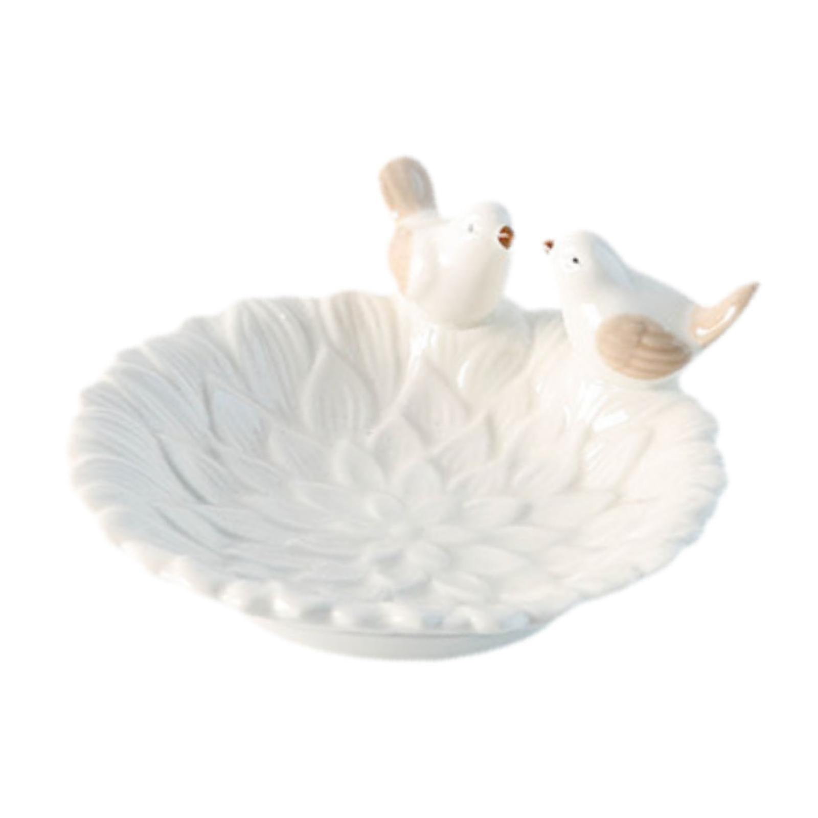 5inch Circular Ceramic Ring Trinket Tray with 2 Birds Statues for Room Decor