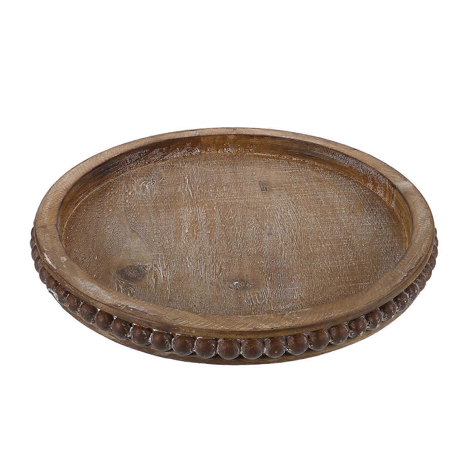 French Vintage Wooden Tray for Serving with 2Pcs Round Rustic Plates