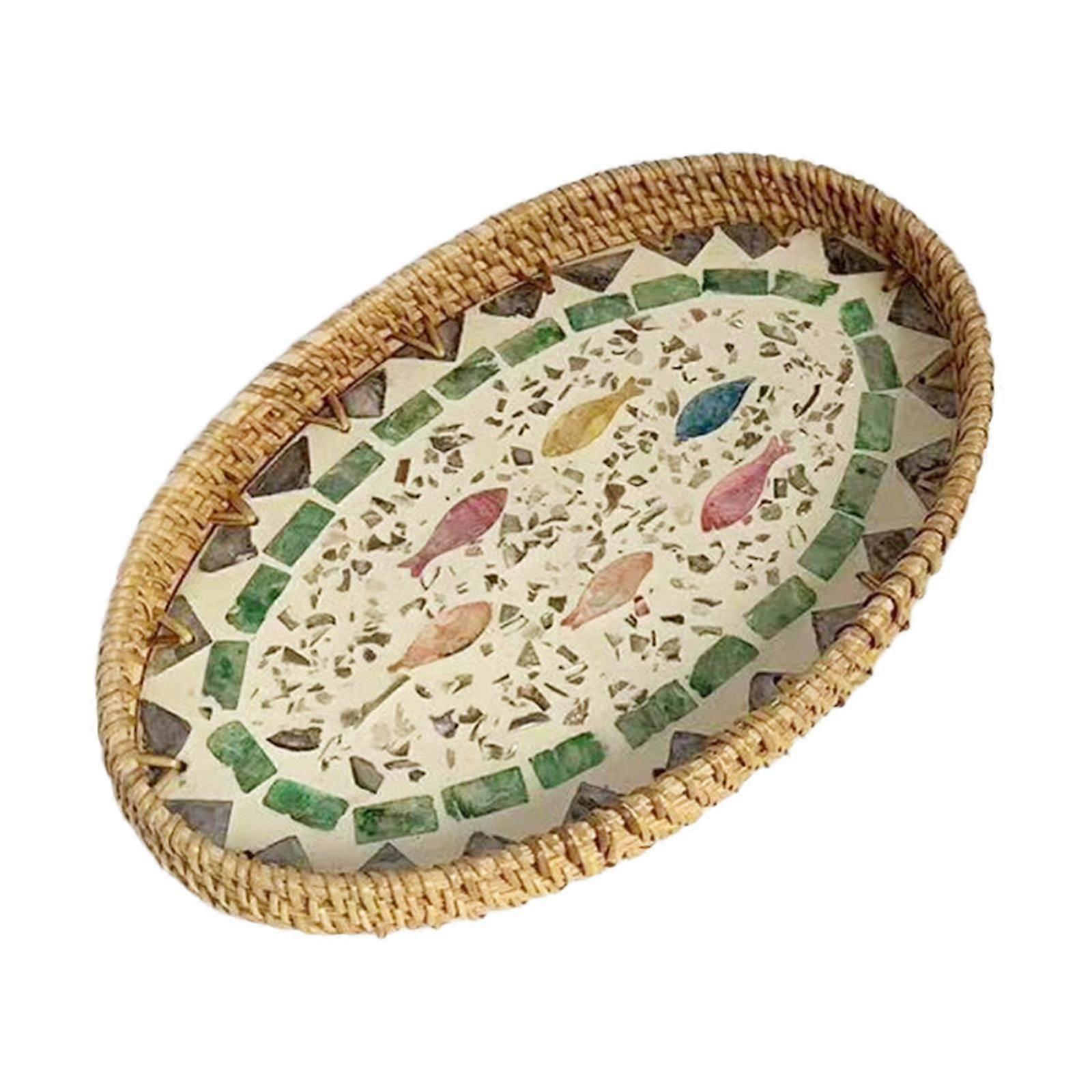 Rattan Serving Tray Oval Decorative Serving Basket for Party Dresser Bedroom S Style A