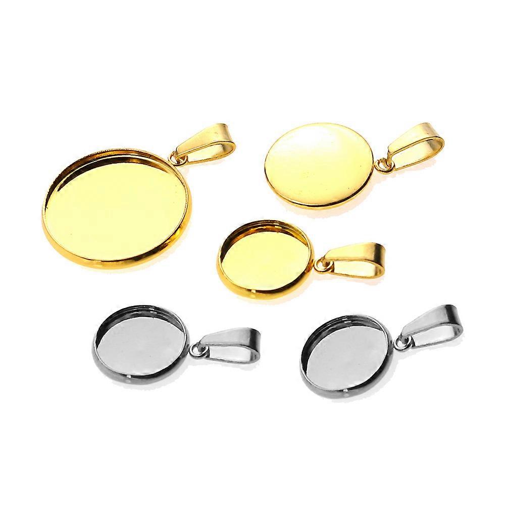 This item is a pack of pendant storage trays, which is made of stainless steel. It is a great set for DIY your necklace, bracelet, earrings, etc.. Simple design will add some embellishment and make your jewelry special and outstanding among the crowd. You can also make a special gift with it for your friends and family. Features - Color: Golden. - Material: Stainless steel . - Size (6mm): Approx. 0.6x0.6x0.3cm. - Size (8mm): Approx. 0.8x0.8x0.3cm. - Size (10mm): Approx. 1x1x0.3cm. - Size (12mm): Approx. 1.2x1.2x0.3cm. - Size (14mm): Approx. 1.4x1.4x0.3cm. - Size (16mm): Approx. 1.6x1.6x0.3cm. - Size (18mm): Approx. 1.8x1.8x0.3cm. - Size (20mm): Approx. 20x20x0.3cm. - Size (25mm): Approx. 2.5x2.5x0.3cm. - Size (30mm): Approx. 3x3x0.3cm. - Made of material with fine workmanship and durable. - This delicate pendant tray is simple but stylish. - Combining it with your favorate crafts to make distinctive gifts for friends. - Great DIY gift kit for your friends, lovers or yourself to create a unique DIY charms. - Good accessories for custom jewelry, cameo pendants, crafts, photo jewelry, resin, etc. Package list: 60 x DIY Jewelry Pendant Supplies