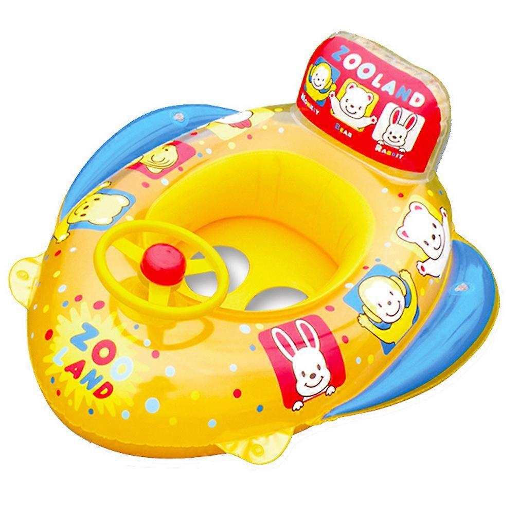 Cartoon Swimming Boat with Steering Wheel Yellow Inflatable Pool Float with Seat