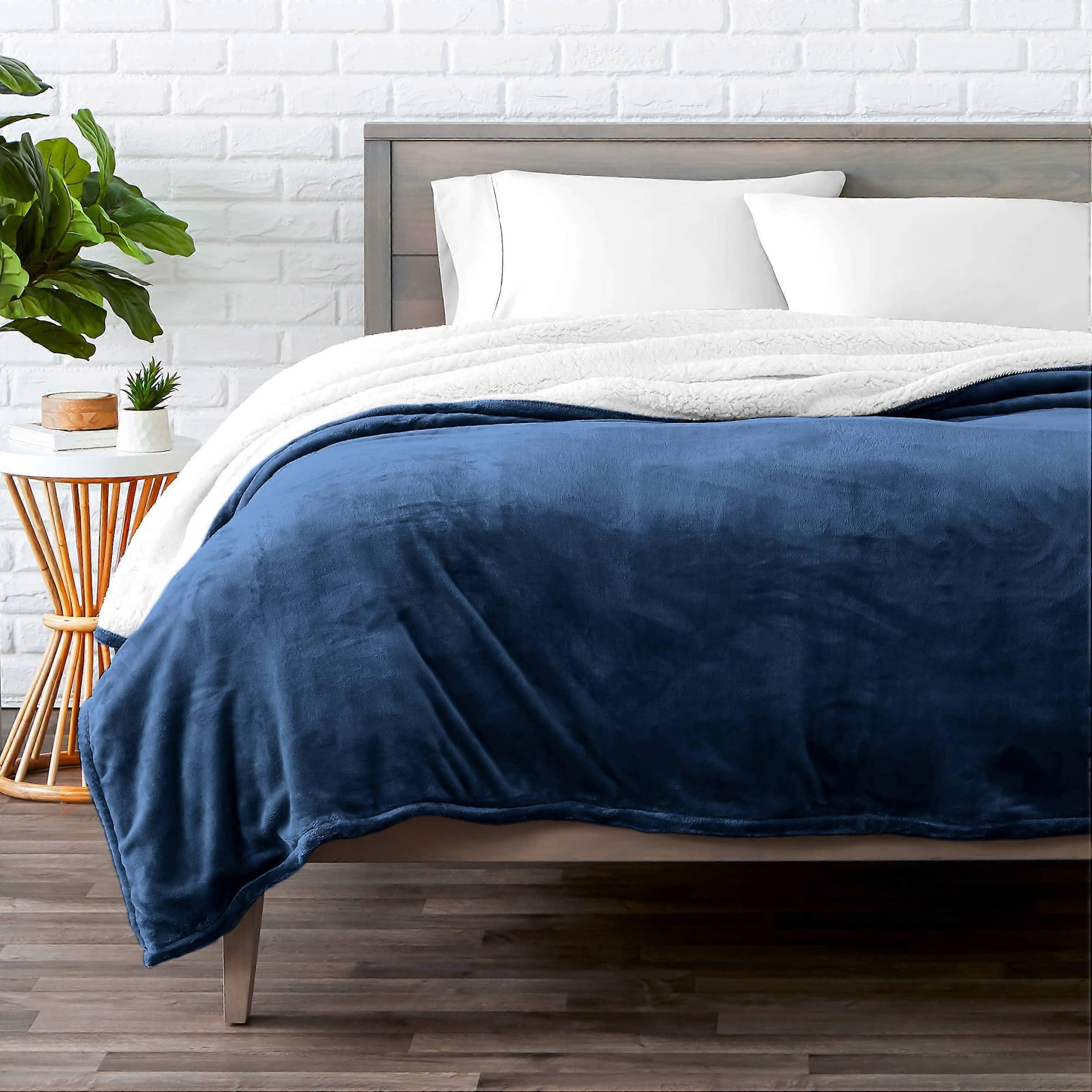 Bare Home Sherpa Fleece Blanket - Reversible Plush Bed Blanket Dark Blue Twin/Twin XL