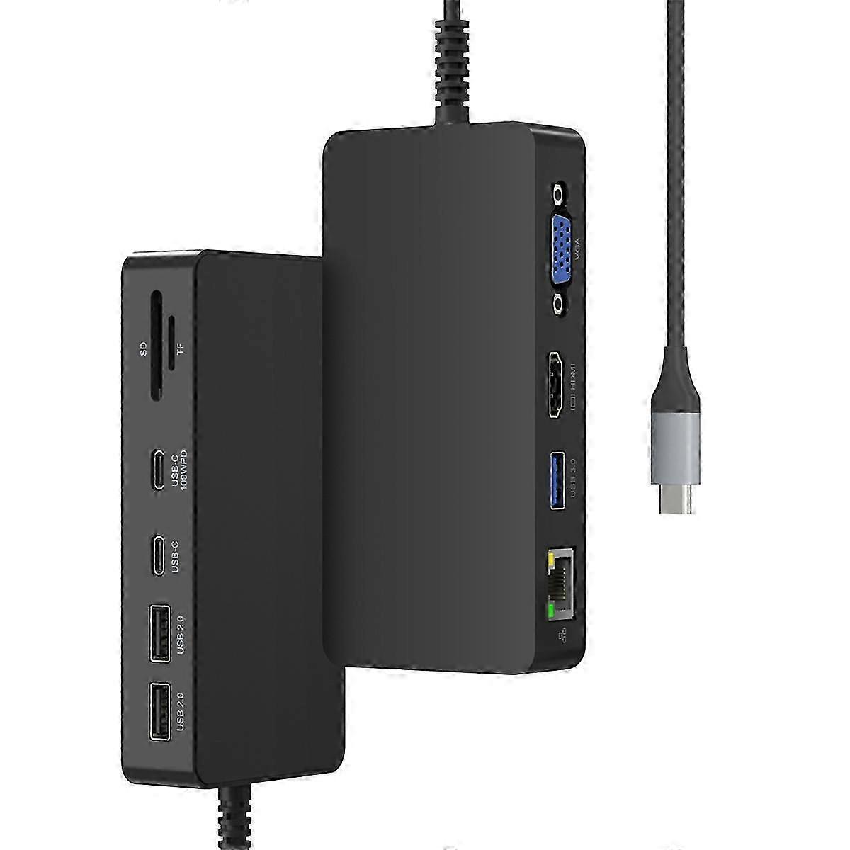 USB C Surface Dock with Power Supply, 11 in 1 Docking Station, Triple Display with 2 HDMI+VGA for Surface Pro Devices
