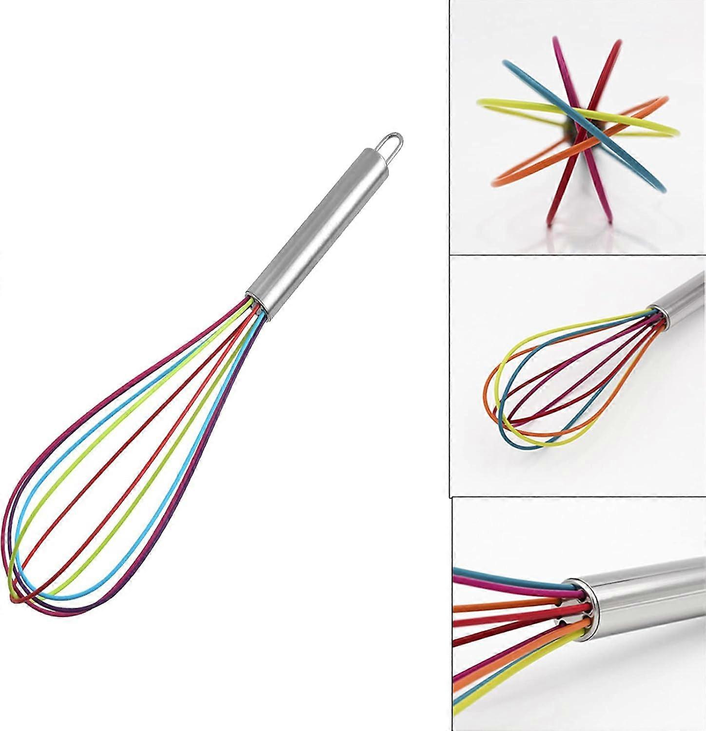 Silicone Kitchen Whisk with Stainless Steel Handle for Mixing, Beating Eggs, Dough, Frothing and Whisking 3 Pieces (8 Inch, 10 Inch, 12 Inch)