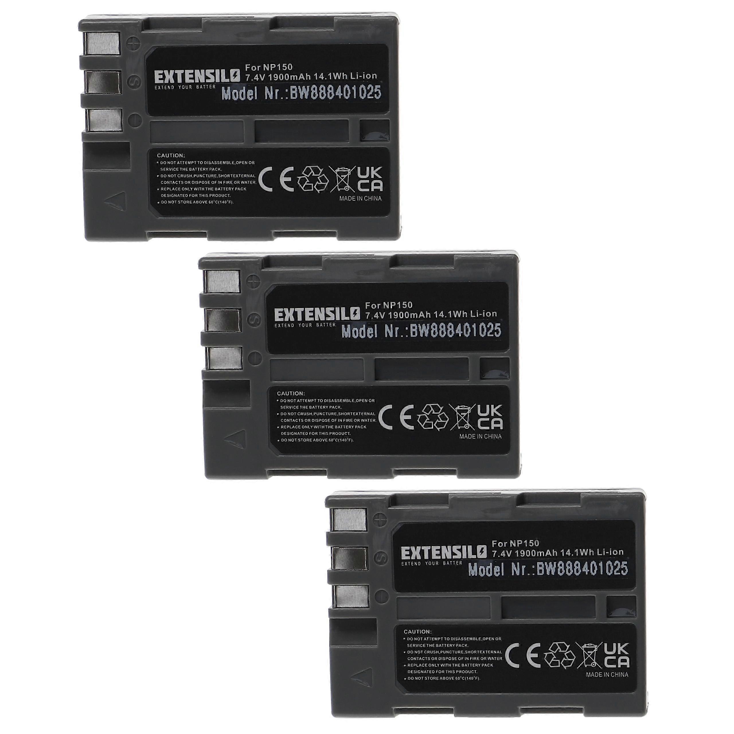 EXTENSILO 3x Akku kompatibel mit Fujifilm IS Pro, BC-150 Kamera (1900 mAh, 7,4 V, Li-Ion)