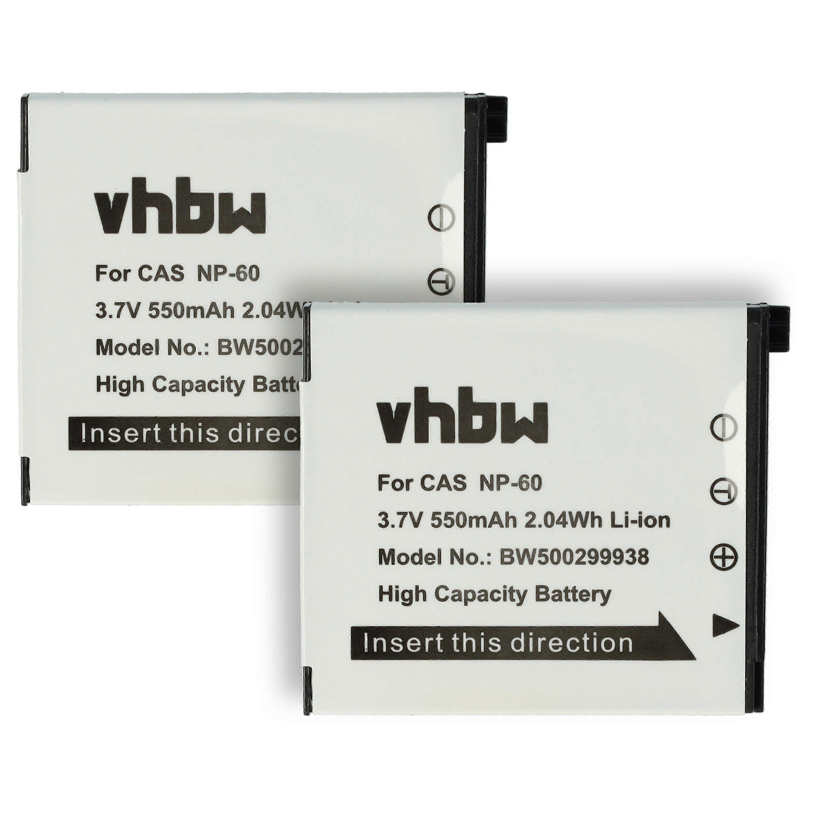 vhbw 2x Akku kompatibel mit Casio Exilim EX-Z9, EX-Z85, EX-Z90, EX-Z80 Kamera (550 mAh, 3,6 V, Li-Ion)