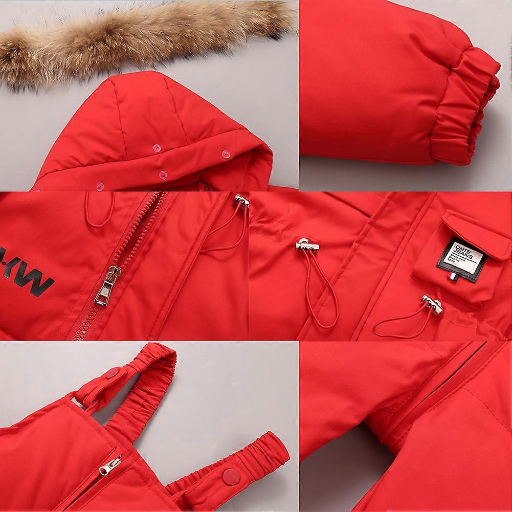 Baby Kids Girls Winter Warm Two Piece Fur Trim Hooded Soild Puffer Down Jacket Snowsuit with Ski Bib Pants Set