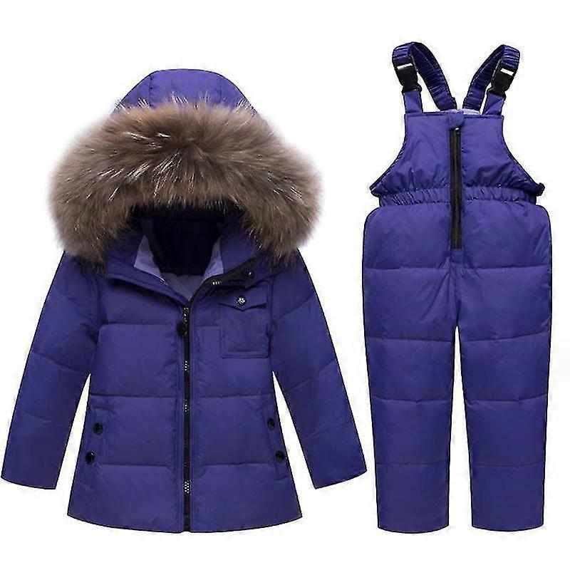 Baby Boys Girls Kids Hooded Artificial Fur Down Jacket Coat And Ski Bib Pants Winter Outfit Sets
