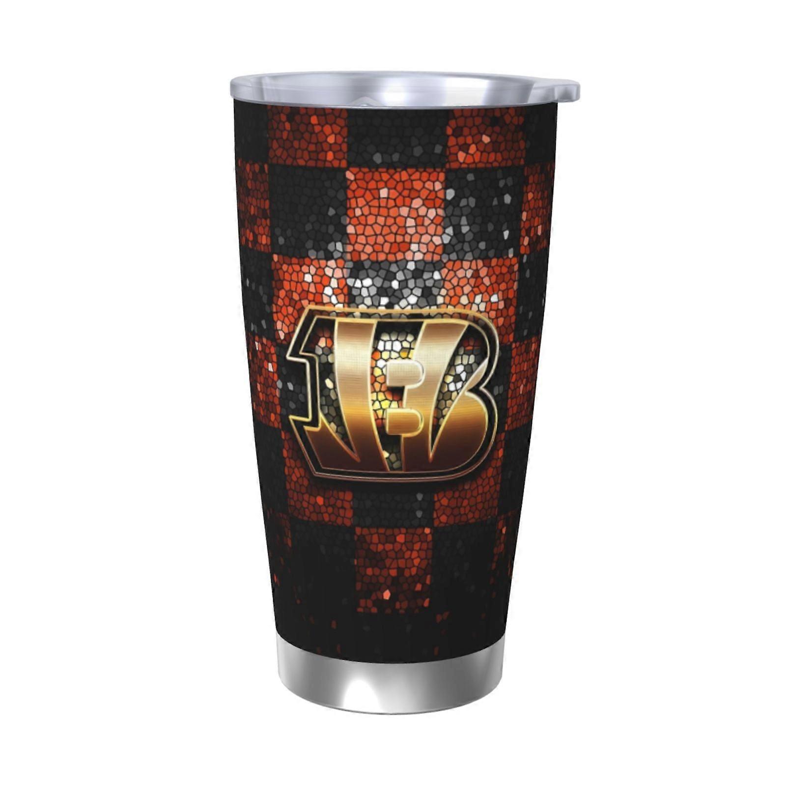 Bengals Football Team Theme 20oz Stainless Steel Thermos Cup with Lid & Straw - Compatible with Car Cup Holder, Hot & Cold Drinks