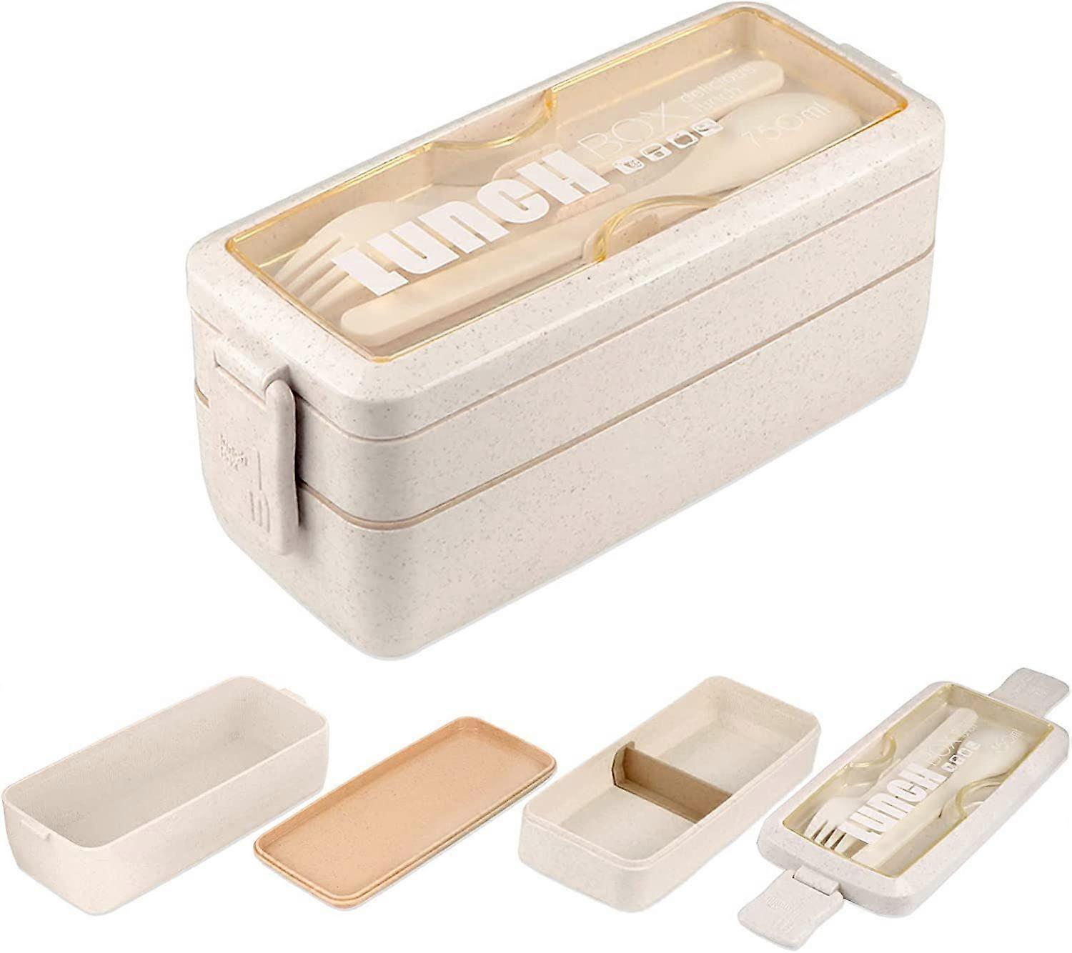 Food Grade Safe Eco-friendly MaterialOur bento box for kids/adults and made of wheat fibre composite material, BPA-FREE, reusable, eco-friendly, no smell. Can be used with confidence.Upgraded Bento BoxThe 2-layer stackable lunch box has redesigned the lock with better materials, making it more durable and greatly improving the life of the lock. The lid has been upgraded to a leak-proof design and has a separate space for dishes.Keep Food FreshThis Japanese bento box is suitable to put fruit, snacks, pasta, chicken, salad, sandwich or sushi and enjoy it where and when you like. Two compartments help you to plan a well-balanced diet, Not only for men and women to keep a healthy diet but also for girls and boys to have comprehensive nutrition.Microwave Dishwasher Safe Bento BoxThe small bento box with utensils can withstand temperatures from -4 to 248 , making it totally suitable for microwave (without lid), dishwasher safe-rack only and it is recommended to wash the lid by hand to be more hygienic.What U GetReusable lunch box*1, fork*1, spoon*1. Trustworthy service, Were so confident that youll love our lunch box, were backing each order with our unconditional money-back guarantee!