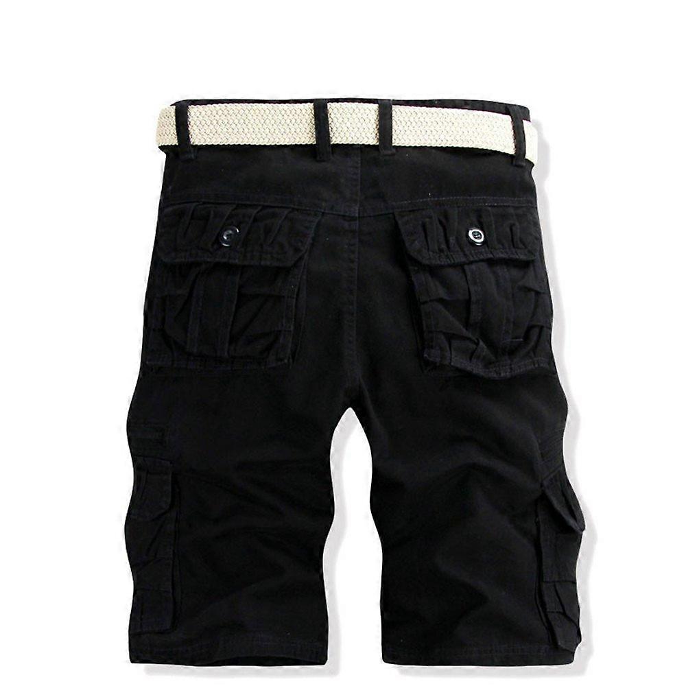 Men's Cargo Shorts Black 31 Inch Knee-Length Stretch Cotton Lightweight Bermuda Shorts for Hiking Camping with Pockets