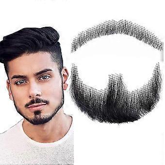 Fake Mustache Fake Beard Goatee Beard Realistic 100% Human Hair Full Hand Tied Goatee False Beards Lace Invisible Fake Mustache for Dressing Men Makeu