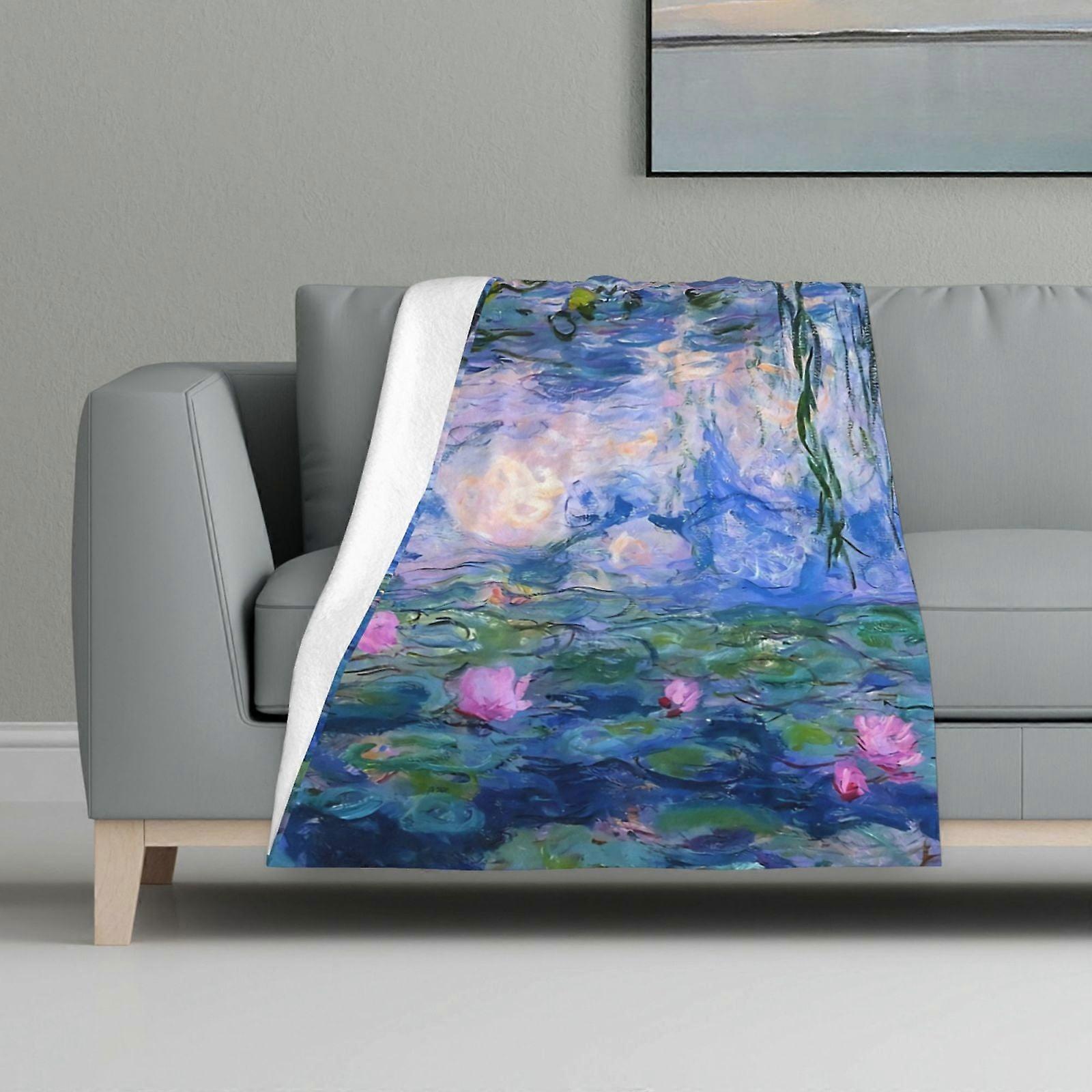 Blanket Multicolour Printed Blanket Super Soft Flannel Lightweight Fluffy Plush Bed Blanket Water Lilies Monet