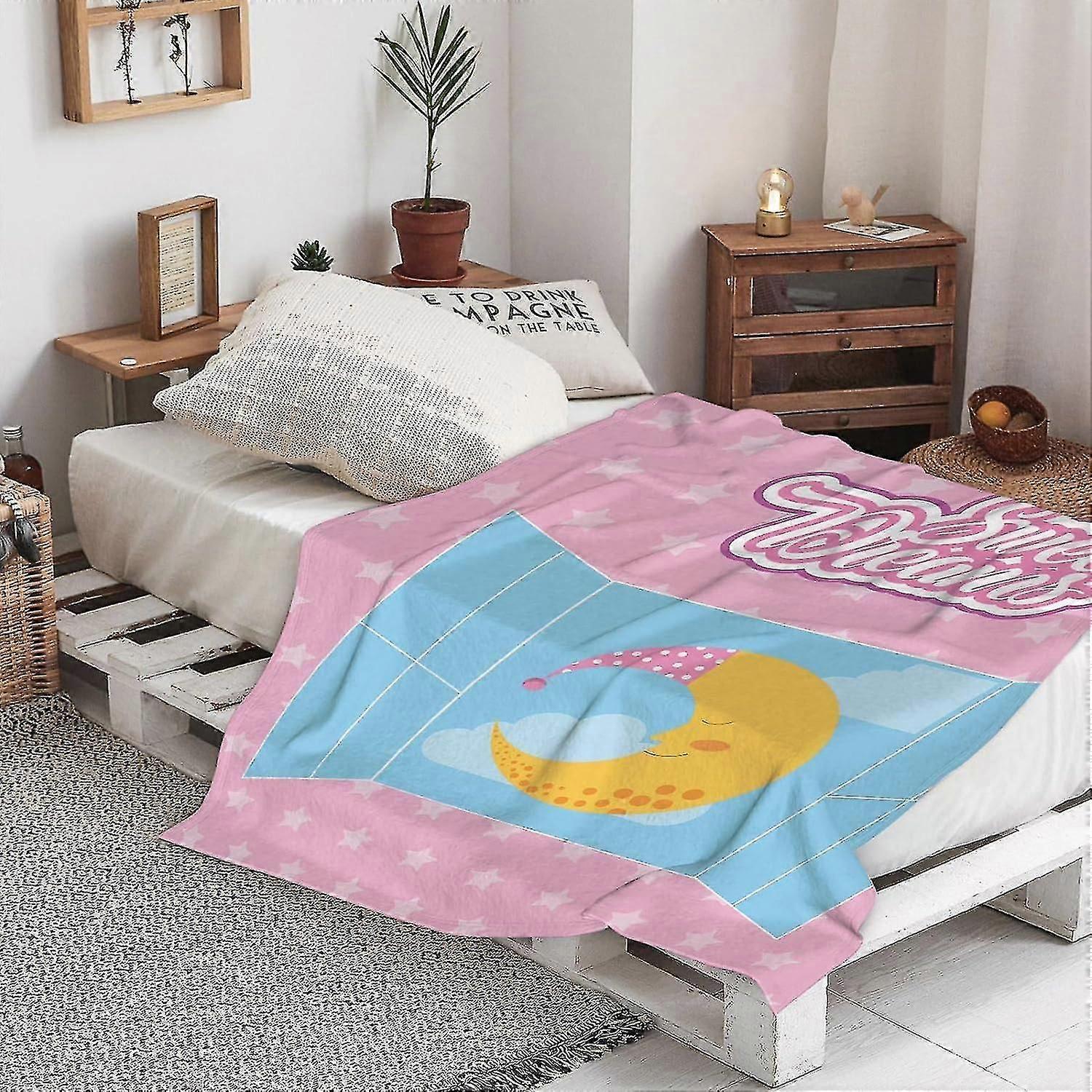 Blanket Warm Soft Sweet Dreams,pink Starry Backdrop With Open Window And Sleeping Moon In Sk Throw Blanket,winter Warm Sofa Bed Throw Bed Picnic Blank