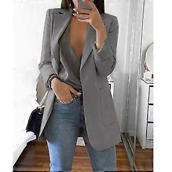 Women's Lapel Work Office Blazer Jacket Casual Long Sleeve Outerwear Hip Length_yyc