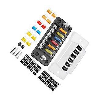 6 Way Fuses Block with LED Indicator High Temp Resistant Housing Fuses Box Heavy Duty for Automotive Motorcycle Circuits Multicolor