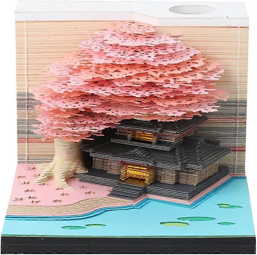 3D Memo Pad Paper Carving Art with LED Lights, 3D Sticky Notes Convenience Post Notes DIY Marriage Tree Kawaii Notepad with Pen Holder