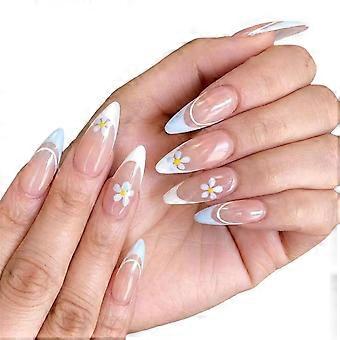 Blue Flower Long Ballet Wearing Nails Durable Full Cover False Nails Finger Nail Diy Decoration Women