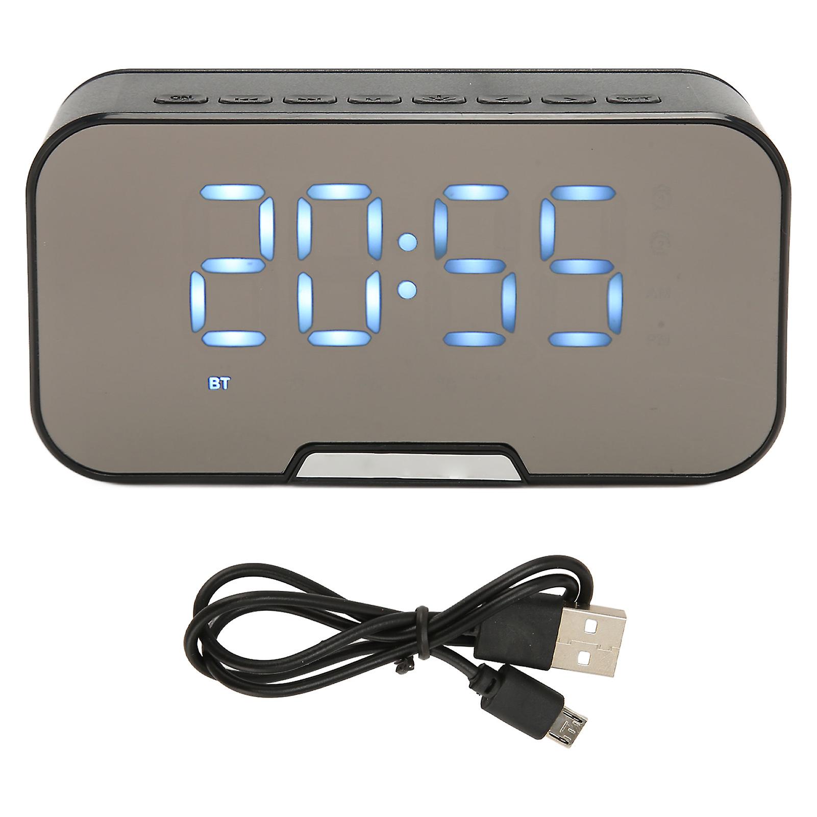 Bluetooth Speaker with Digital Alarm Clock and Temperature Display Voice Announcement FM Radio Mirror Clock Black