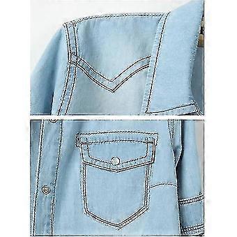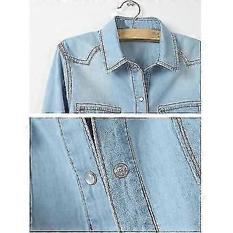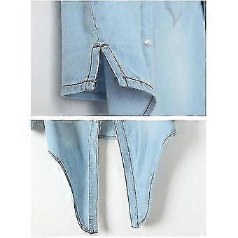 Women's Casual 3/4 Sleeve Button Down Crop Jean Top Knot Tie Denim Shirt Jacket