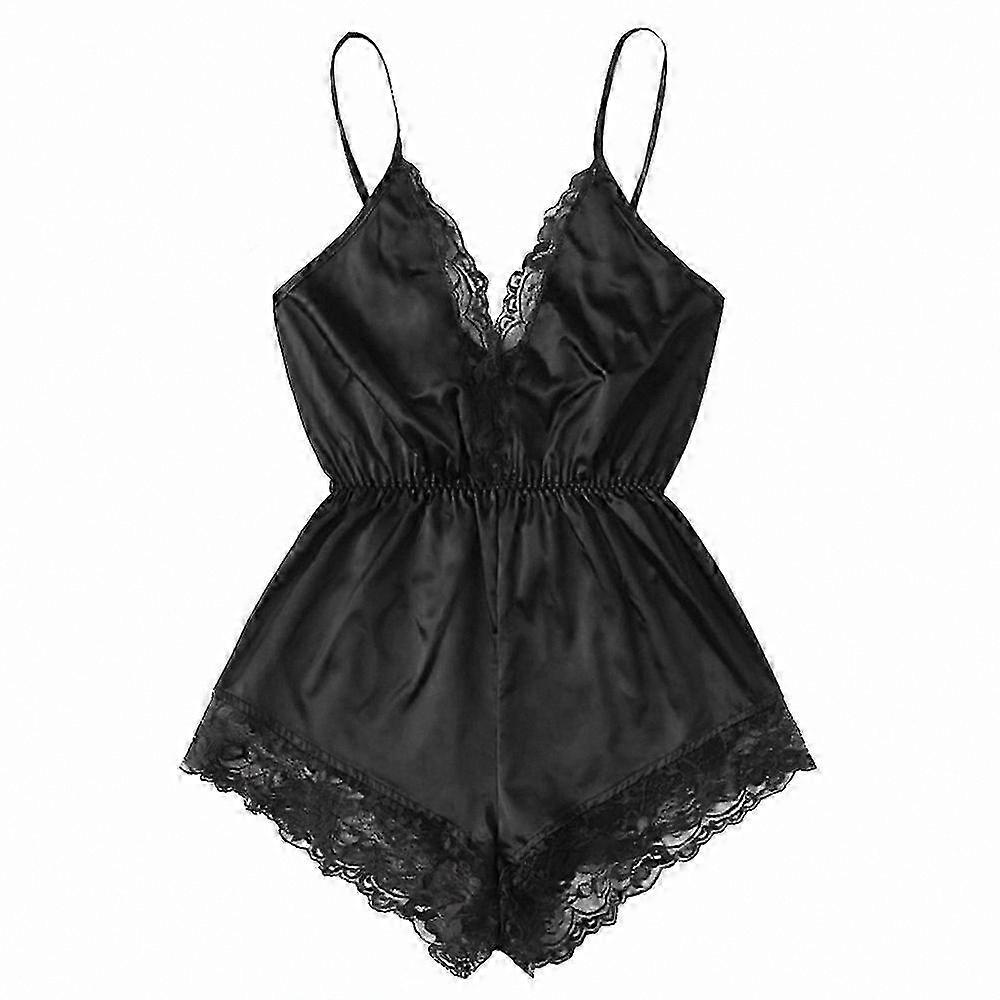 Satin Lace Bodysuit with Shorts Elastic Sleepwear for Women Nightwear Romper