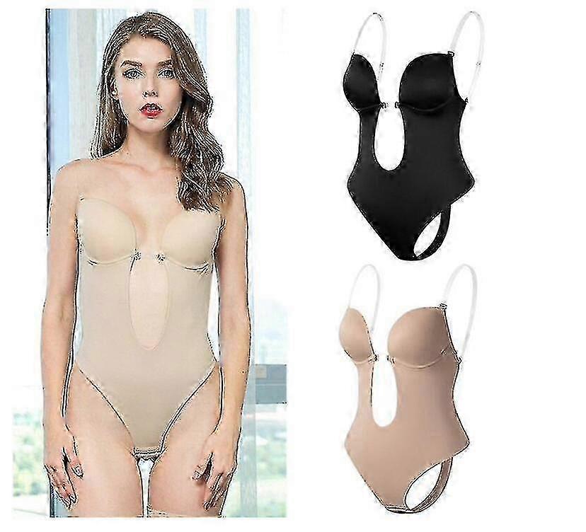 Deep V-Neck Seamless Thong Bodysuit Shapewear for Women Strapless & Backless