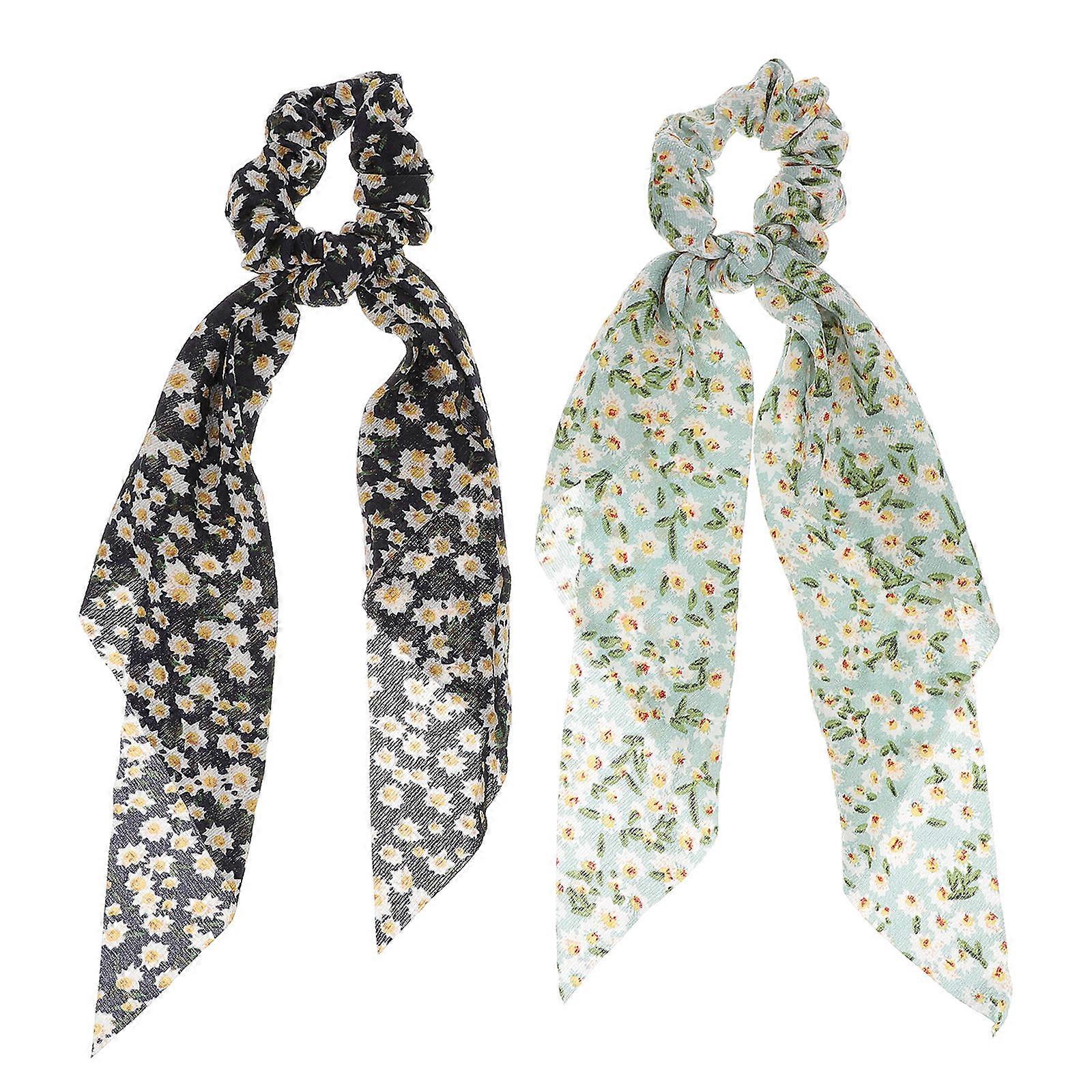 Boho Hair Scarf Scrunchy Scarf Women Various Occasions 38x7cm Chiffon Floral Scrunchie 2Pcs