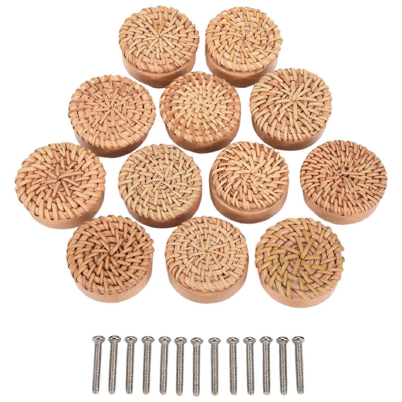 Boho Rattan Dresser Knobs Round Wooden Drawer Knobs Handmade Wicker Woven and Screws for Boho Furniture Knobs 12Pcs
