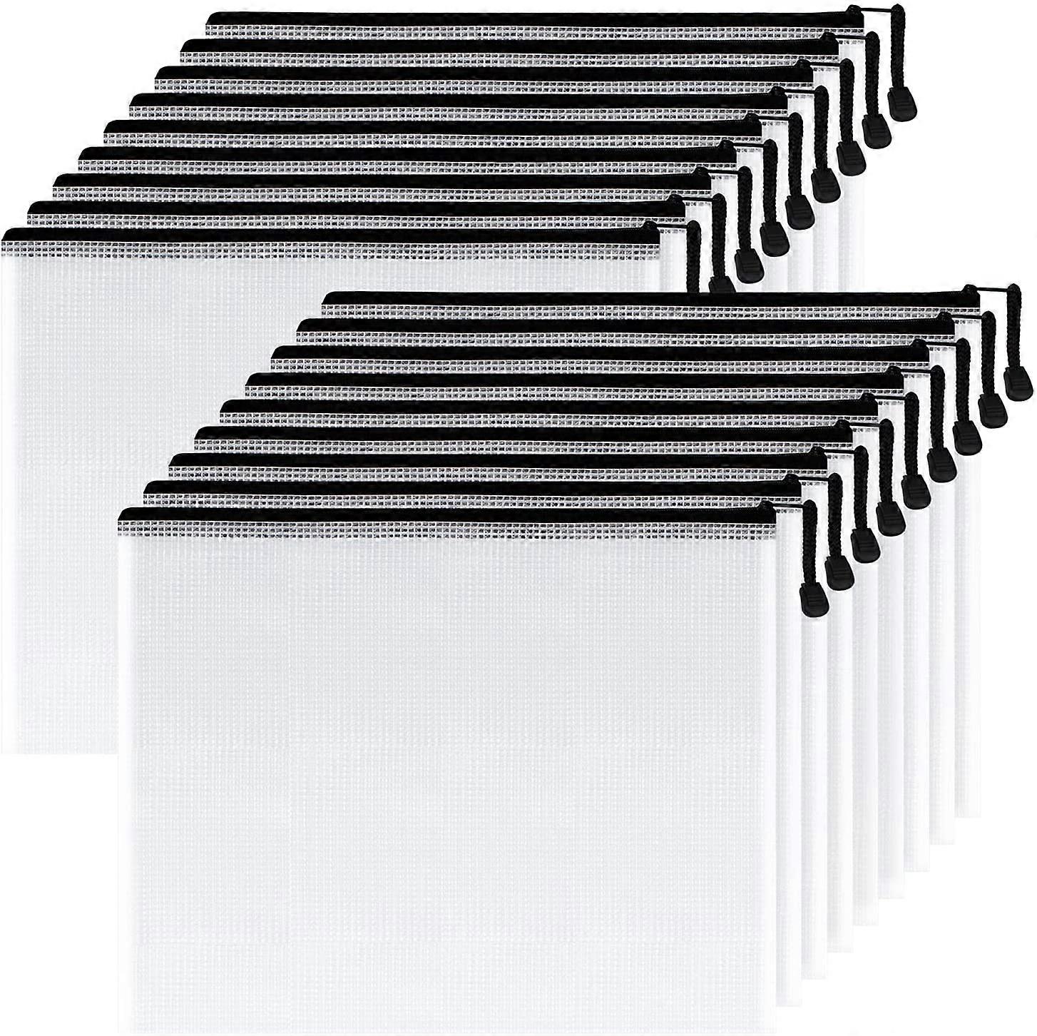Plastic Mesh Zipper Pouch 9x13 in,Extra Large Water-Resistant Zip Bag for School Office Supplies