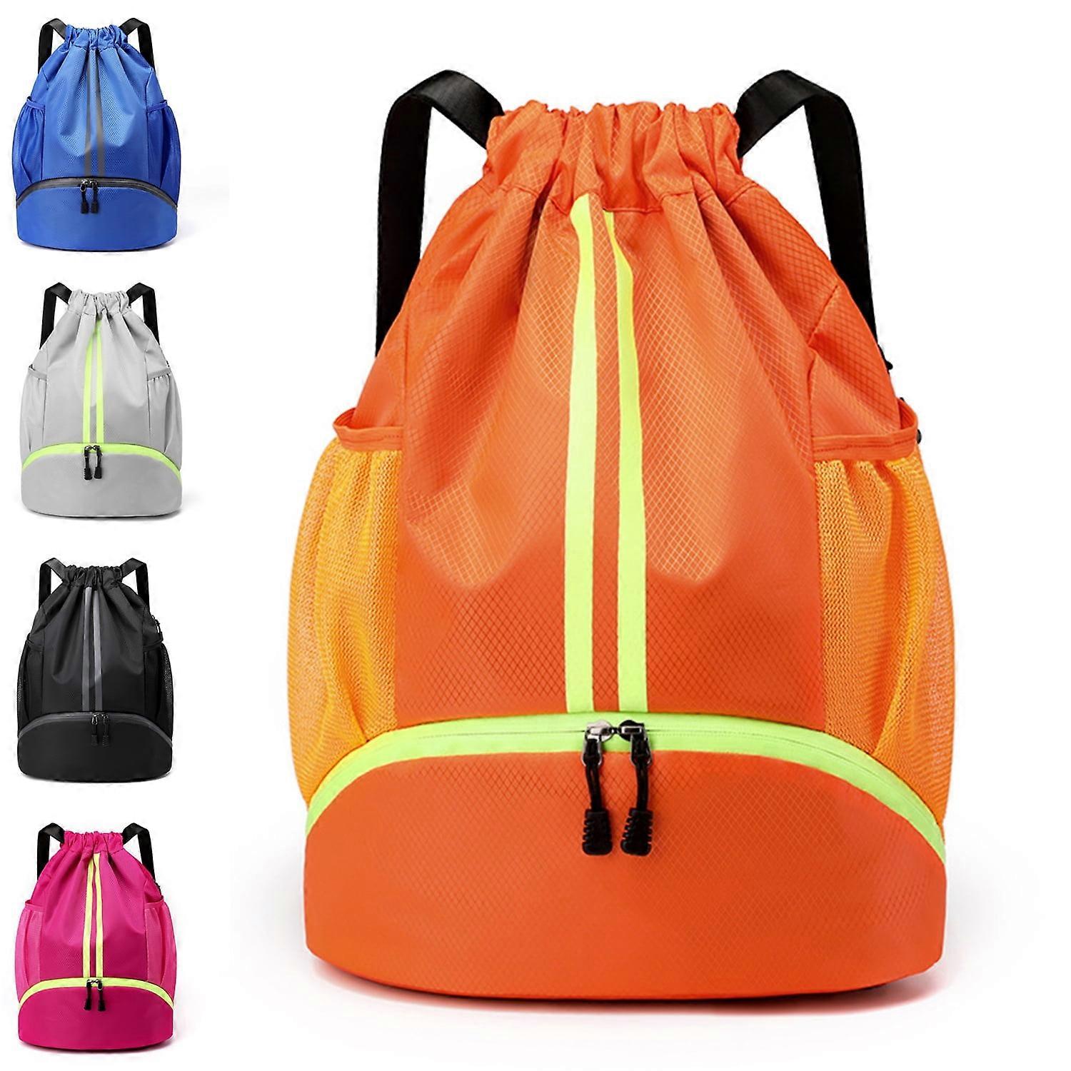 Swimming Sports Gym Bag, with Outside Zipper Pocket for Sport, Travel Waterproof Drawstring Backpack