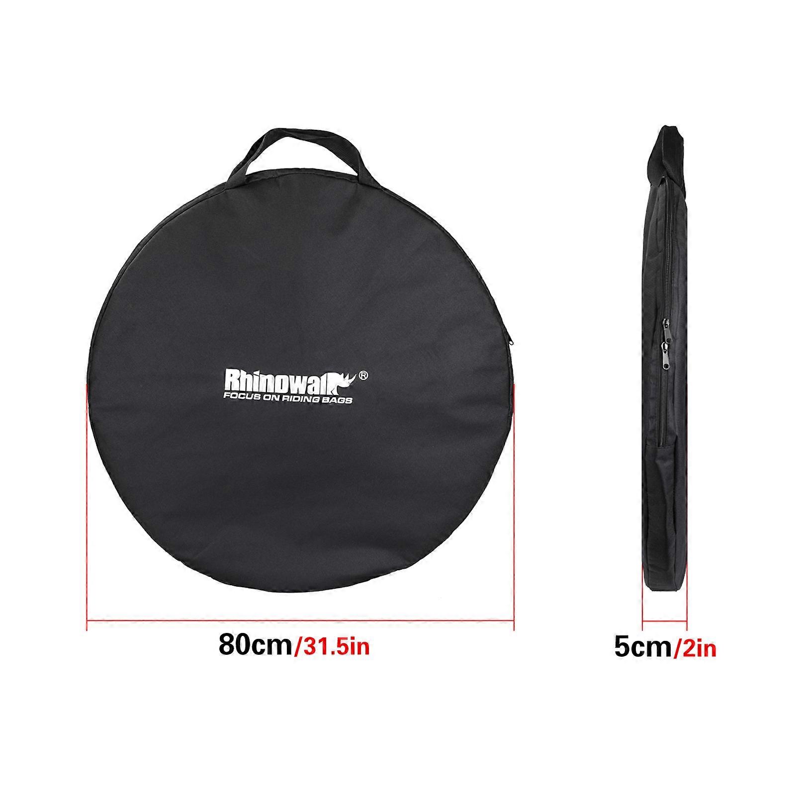 29 inch Bicycle Wheelset Bag Wheel Carry Bag Oxford Bike Travel Tire Bag Wheel Cover for Mountain Road Bike Features: Made of high intensity 600D oxford material, tear-resistant and wear-resistant, long lasting durability. PE cotton fabric with waterproof lining, easy to keep clean and wash, recycled and practical. Large semicircular opening with double zipper, more convenient to put in and take out effortlessly. Double webbing handle, fine stitching workmanship, solid and strong. Easy to accept 26/27.5/29.5/700C wheel, suitable for bicycle riding lovers. Specifications: Material: 600D Oxford Color: Black Diameter: 80 cm / 31.5 in  Thickness: 5 cm / 2 in  Item Weight: 700 g / 24.7 oz  Package Size: 26 * 23 * 9 cm / 10.2 * 9.1 * 3.5 in Package List: 1 * Bike Wheel Bag