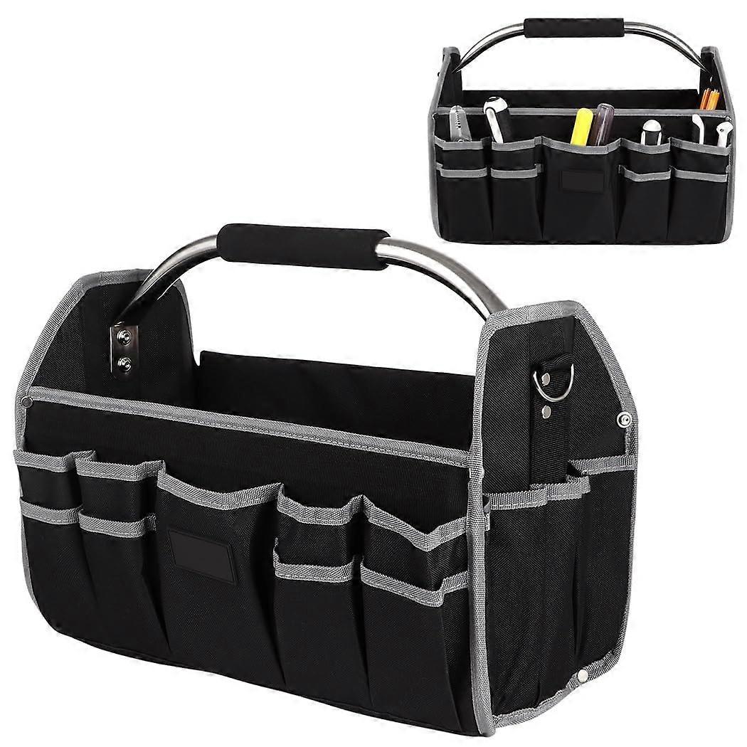 16 Inch Wide Mouth Tool Bag with Waterproof PVC Base, 21 Pockets and Padded Shoulder Strap