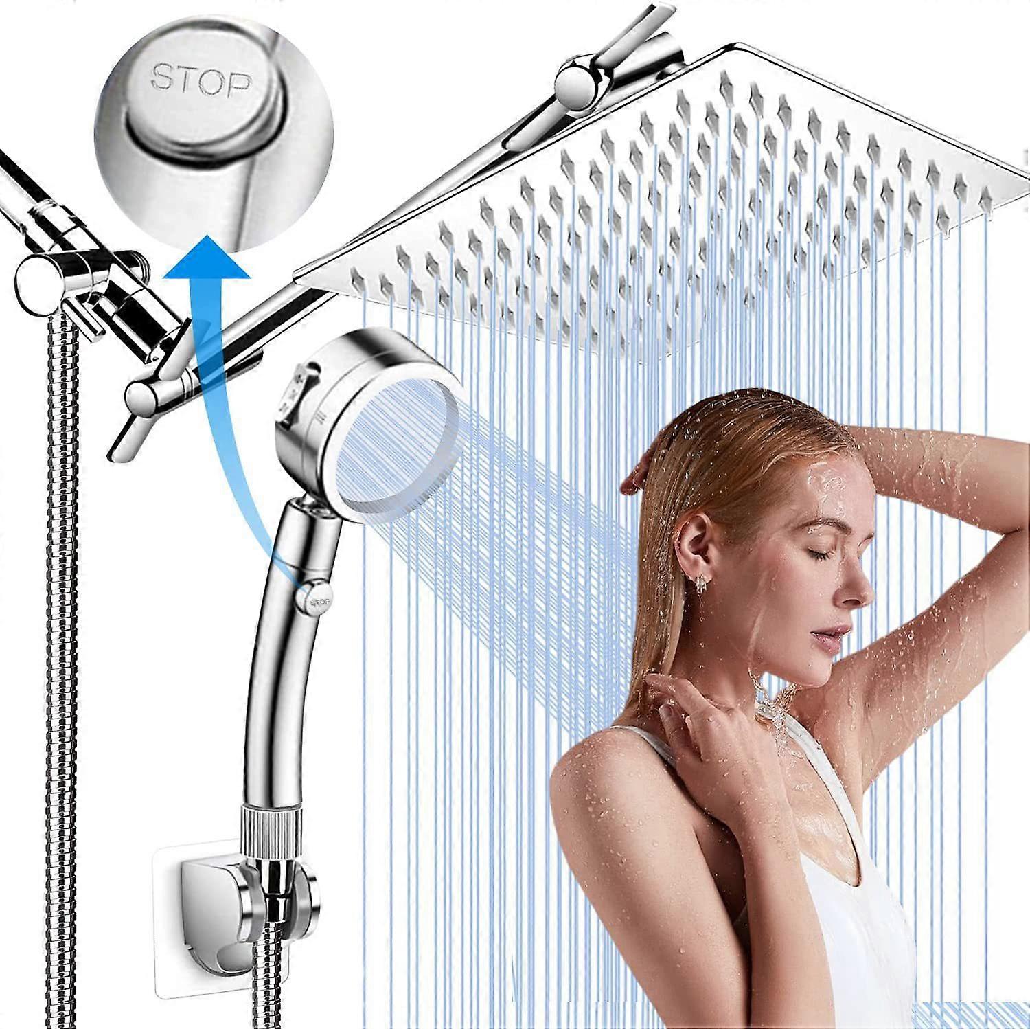 good 10 inch (approx. 25.4 cm) Shower Head Set, High Pressure Shower Head with 4 Settings Hand Spray and 11 inch (approx. 27.9 cm) Brass Adjustable Ex